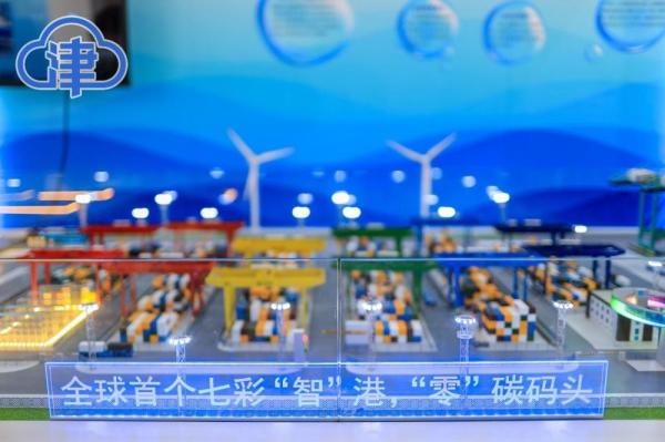 在科技感十足的天津港展臺(tái)前,天津港c段智能集裝箱碼頭的全景沙盤吸引了大家的目光。“這是全球首個(gè)‘智慧零碳’碼頭,標(biāo)志著天津港集團(tuán)努力打造世界一流的智慧港口、綠色港口有了最新重大成果,將以全新模式引領(lǐng)世界港口智能化升級(jí)和低碳發(fā)展?!碧旖蚋奂瘓F(tuán)展區(qū)工作人員高曉坤告訴記者。
