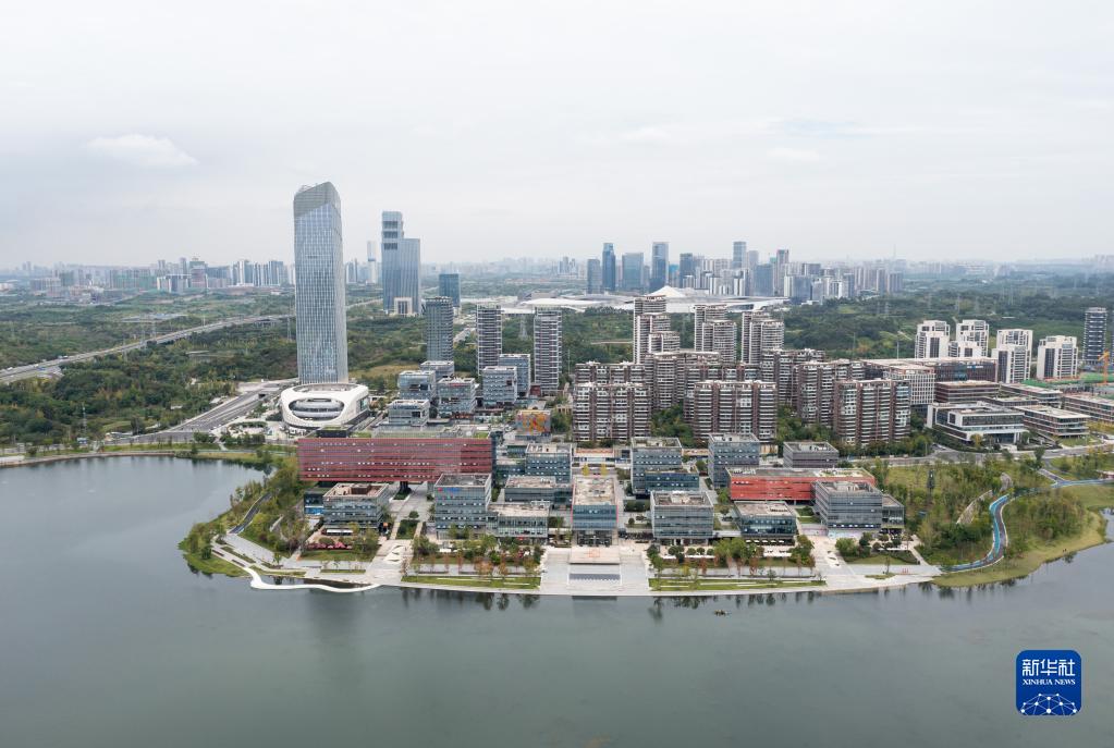 俯瞰四川天府新區(qū)興隆湖畔的科研機(jī)構(gòu)建筑大樓群(2022年9月21日攝,無人機(jī)照片)。新華社記者 江宏景 攝
