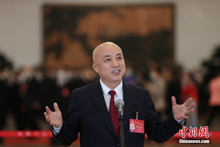 10月16日,中國共產(chǎn)黨第二十次全國代表大會在北京人民大會堂開幕。大會開幕前,舉行“黨代表通道”采訪活動。圖為王旭東代表接受采訪。 中新社記者 蔣啟明 攝