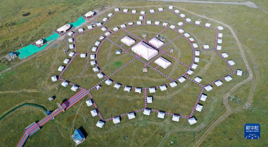 這是甘肅省甘南藏族自治州碌曲縣尕海鎮(zhèn)尕秀村帳篷城景區(qū)(無(wú)人機(jī)照片,2021年9月9日攝)。新華社記者 陳斌 攝