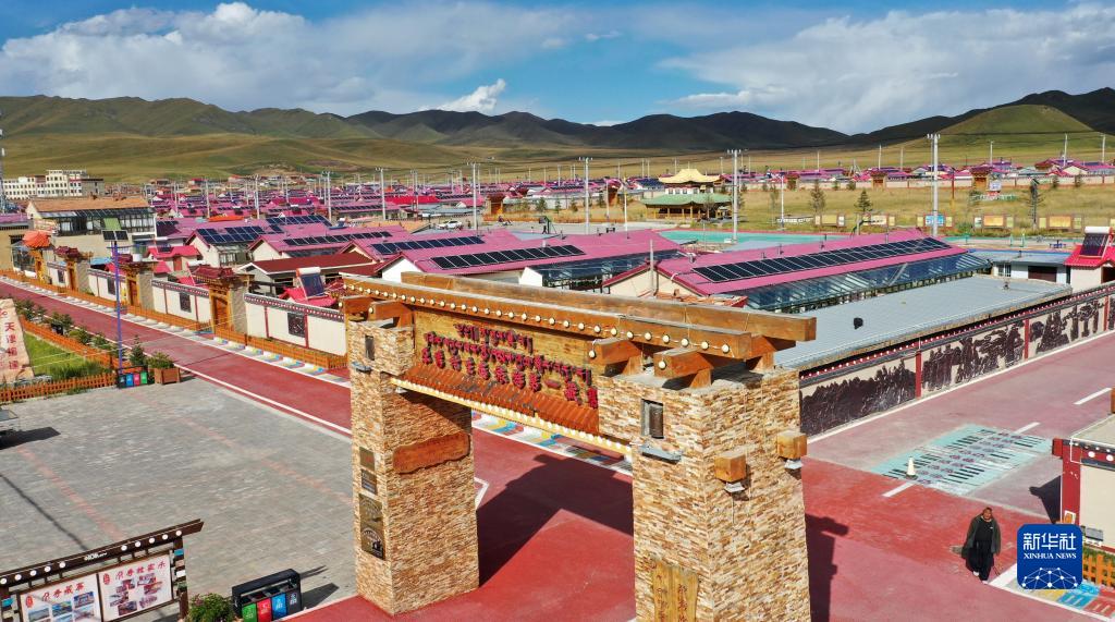 這是甘肅省甘南藏族自治州碌曲縣尕海鎮(zhèn)尕秀村村貌(無(wú)人機(jī)照片,2021年9月9日攝)。新華社記者 陳斌 攝
