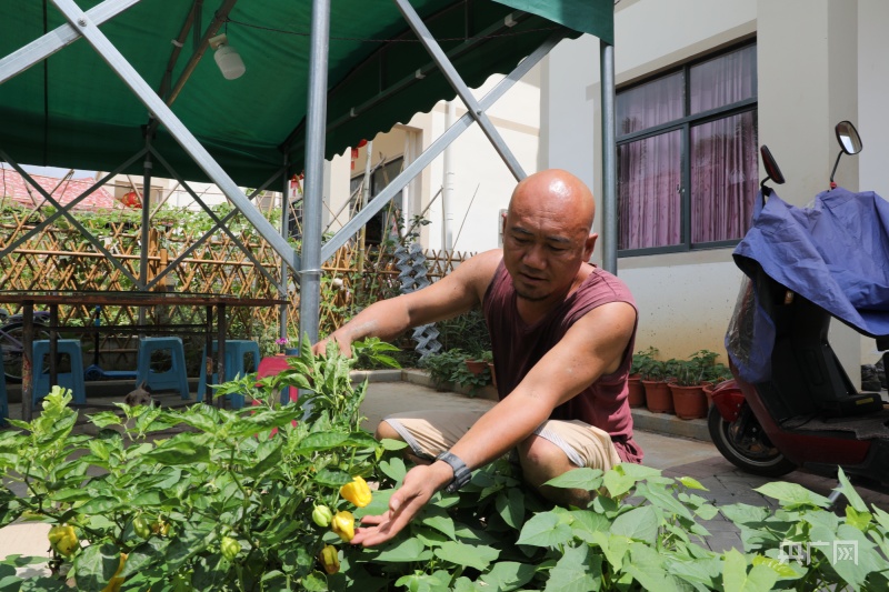 陳龍在自家門口種植蔬菜(央廣網(wǎng)記者 林韋瑋 攝)