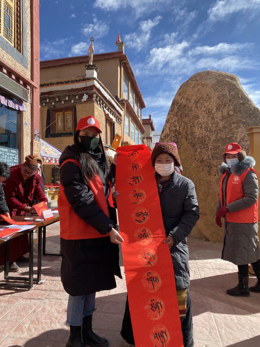“寫春聯(lián)、貼春聯(lián)是中華民族的傳統(tǒng)年俗,我們希望用義寫春聯(lián)的方式,讓傳統(tǒng)文化更加貼近群眾,也讓人們留住過年的美好記憶?!崩硖量h書法協(xié)會會長昂旺曲批說。