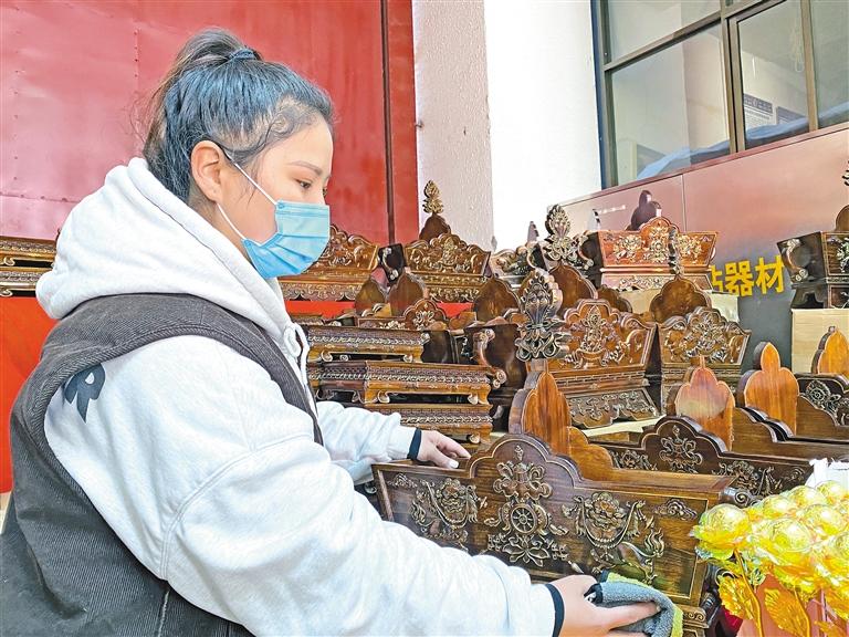 在雪域亙古浩瀚的歷史中,高原兒女自古以來便認(rèn)定“羊”是吉祥的動(dòng)物,代表了藏族群眾祈盼來年五谷豐登、六畜興旺。塑彩羊頭在藏語中稱為“隆果”,一般擺放在新年布置的貢品中央。“爸媽去年購(gòu)買了一種用石灰制作的塑彩羊頭,今年我想購(gòu)買陶瓷制作的塑彩羊頭放在爸媽家,去年買的拿回自己家,這樣既環(huán)保,也讓老人開心?!笔忻袼骼释言谀曦洈偽毁?gòu)買“隆果”時(shí)說。