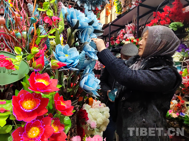 “我家店里客人挺多的,尤其這幾天,首先是因為我們的花種齊全,應(yīng)有盡有,價格也實惠,其次我們之間能進行簡單的溝通,我會一些日常簡單的藏語,他們也會說一些漢語。所以挺受大家歡迎?!蹦履不ǚ坷习迥擦岣吲d地說。