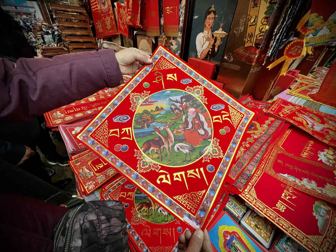 大紅的春聯(lián)、精致的切瑪盒、象征吉祥的羊頭、五彩的羅薩梅朵……藏歷新年上應(yīng)景的物件被一一擺上了街頭。雖然春節(jié)剛過去,但古城拉薩的大街小巷里年味仍然濃厚,再過不久,2022年3月3日,雪域高原將迎來藏歷水虎新年。