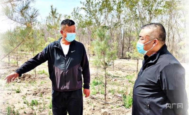 余磊在苗木基地察看苗木長勢(shì)情況。(央廣網(wǎng)發(fā) 阿依加瑪麗·列提甫 攝)