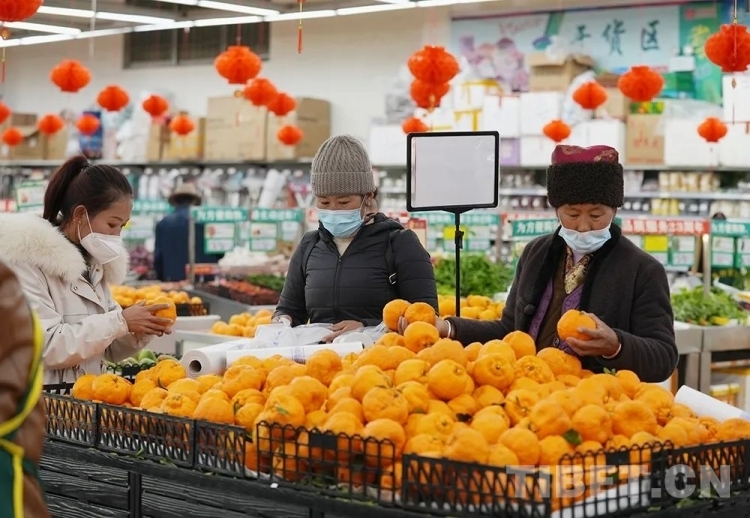 資料圖:2023年春節(jié)、藏歷新年前夕山南市各族群眾在超市選購年貨