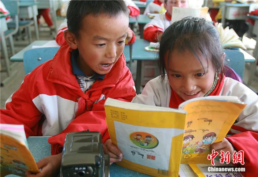 西藏日喀則市上海實(shí)驗(yàn)學(xué)校的課堂上,孩子們?cè)诶首x課文。張學(xué)軍 攝