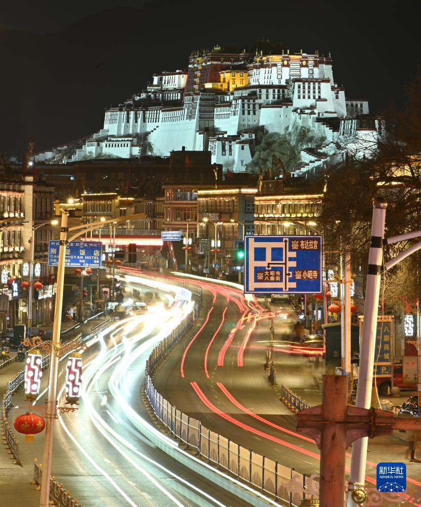 夜晚的布達拉宮。新華社記者 周荻瀟 攝