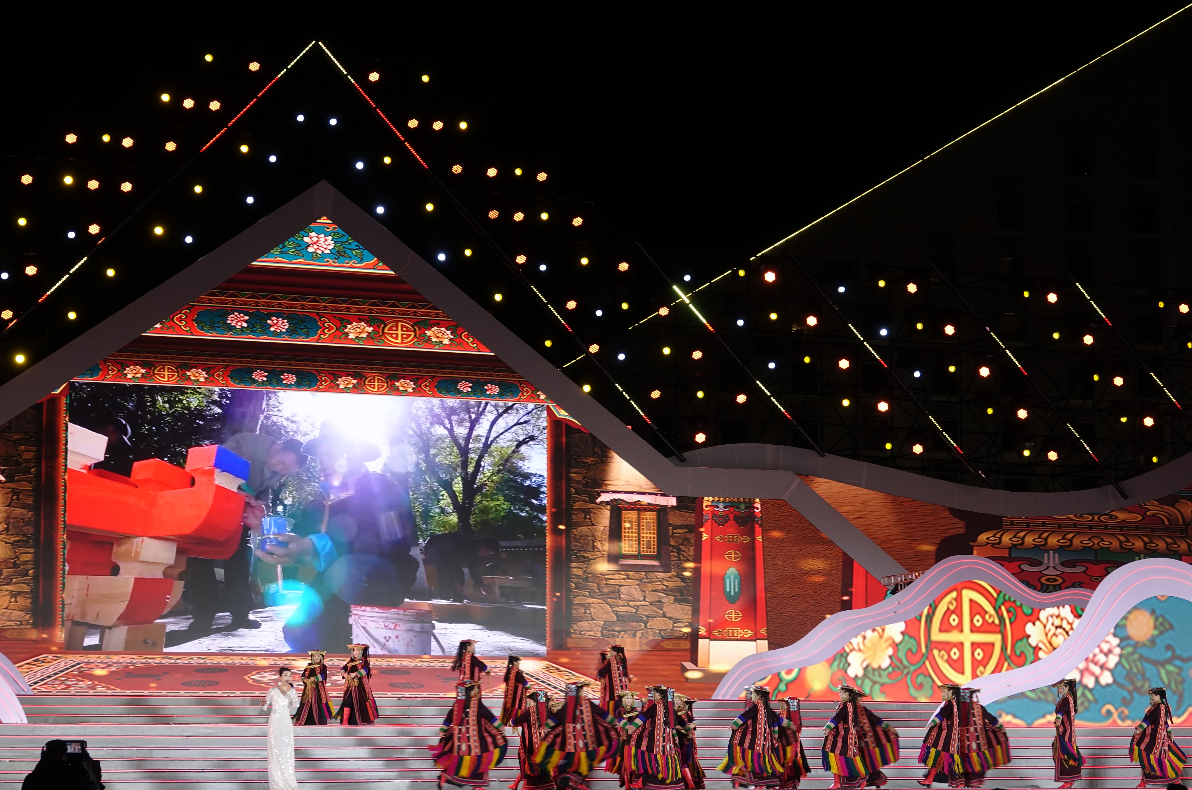 文藝演出《擁抱新西藏》在經(jīng)久不息的歡呼聲中開場。京劇《四郎探母》、藏戲《扎西雪巴》、粵劇《文成公主》選段,三種戲曲藝術(shù)跨界融合表演,充分展現(xiàn)了中華優(yōu)秀傳統(tǒng)文化的魅力,在文化的交融中飽含各族兒女對祖國母親的熱愛和眷戀之情。情景歌舞《我來了,西藏》《金色家園》《呀啦嗦》《幸福踏歌》等精彩節(jié)目,生動(dòng)展現(xiàn)了新時(shí)代十年西藏各項(xiàng)事業(yè)取得的全方位進(jìn)步、歷史性成就;《牽夢西藏》《心手相連》《云端上的納木措》《藍(lán)天下的祝?!贰稅傄麸w揚(yáng)》《飲酒歌》,充分展示了西藏自然風(fēng)光之美、歷史人文之美、民族風(fēng)情之美、包容開放之美,再次向世界發(fā)出真誠邀約,歡迎四面八方的朋友親近西藏、感悟西藏。