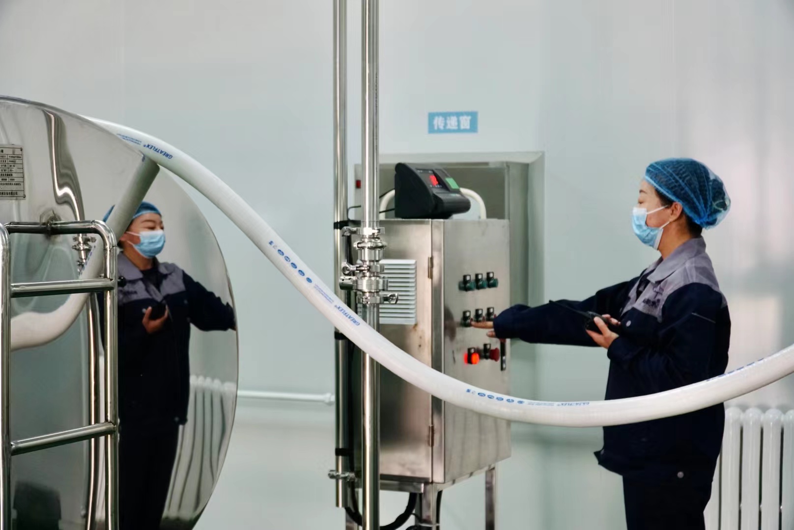 走進烏蘭鄉(xiāng)村振興產(chǎn)業(yè)園區(qū)內(nèi)的天精本草生物科技有限公司,只見一棟棟現(xiàn)代化廠房有序排列。在公司生產(chǎn)車間,一排排現(xiàn)代化設(shè)備運轉(zhuǎn)不息,按比例配制好的枸杞鮮果經(jīng)過自動清洗、壓榨、灌裝、包裝等工序,變成不同規(guī)格的紅枸杞原漿。