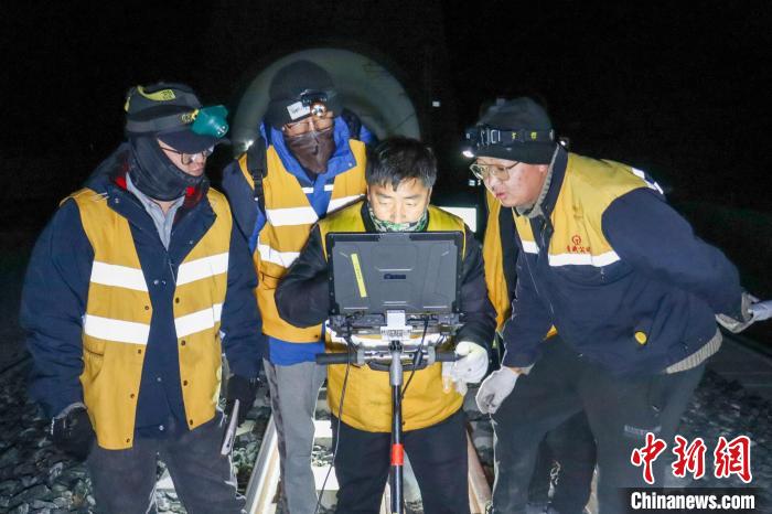 圖為2月9日晚,西藏拉林鐵路設(shè)備檢查作業(yè)現(xiàn)場?!●R生明 攝