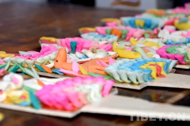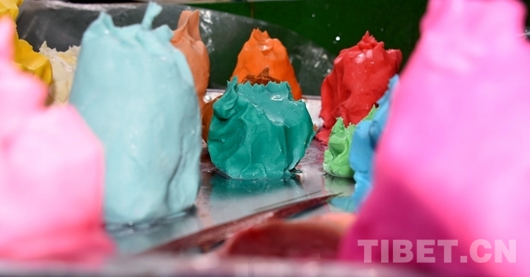 圖為制作酥油花所使用的各色酥油胚料 攝影:次旦拉姆