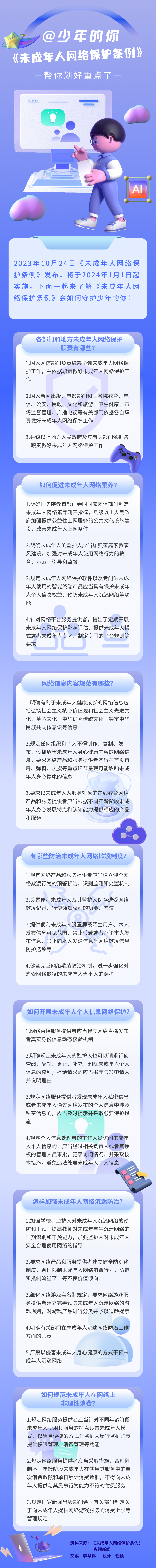 2023年10月24日《未成年人網(wǎng)絡保護條例》發(fā)布,將于2024年1月1日起實施。這是我國出臺的第一部專門性的未成年人網(wǎng)絡保護綜合立法,旨在營造有利于未成年人身心健康的網(wǎng)絡環(huán)境,保障未成年人合法權益,為未成年人網(wǎng)絡保護提供有力的法治保障。下面一起來了解《未成年人網(wǎng)絡保護條例》會如何守護少年的你!