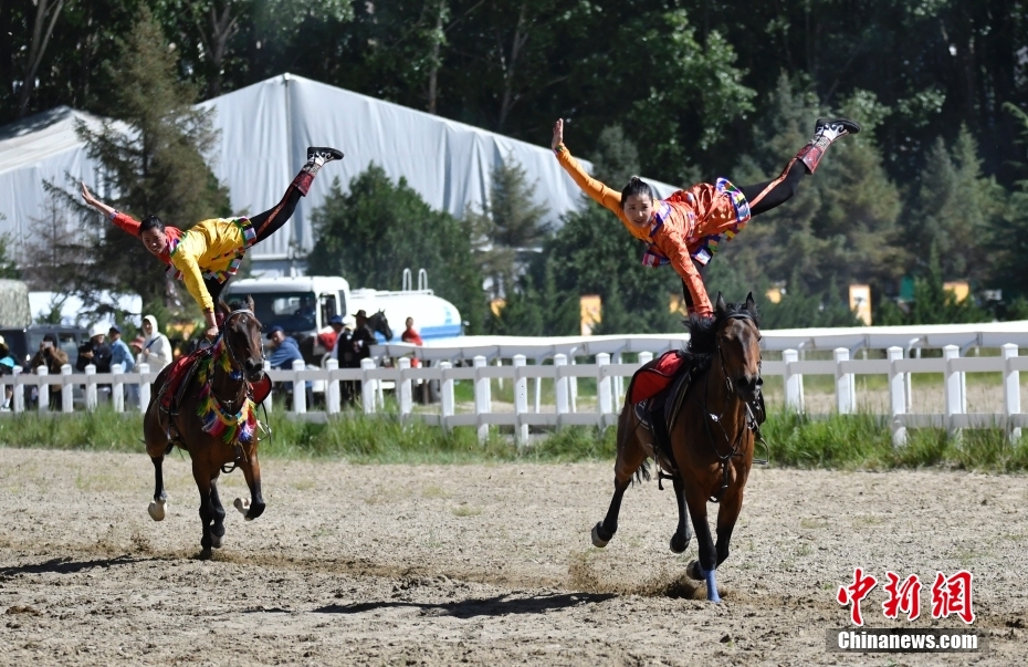 8月17日,騎手們進(jìn)行馬術(shù)表演。當(dāng)日,2023年拉薩雪頓節(jié)民族傳統(tǒng)馬術(shù)表演在西藏拉薩市北郊賽馬場(chǎng)舉行。