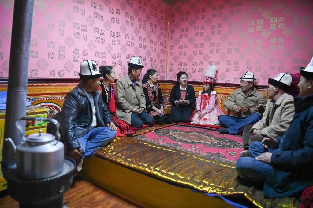 鄉(xiāng)親們你一言我一語(yǔ)。院子外,不大的村落靜謐安詳,點(diǎn)點(diǎn)燈光為凜冽的高原夜色增添了暖意。屋子里,熱騰騰的爐子旁,大家伙兒臉上紅撲撲的。戶主家九歲的小女兒阿依克熱木·阿卜杜加米爾坐在大人中間,捧著小臉,眼里亮晶晶,似乎也在琢磨自己的來(lái)年目標(biāo)。