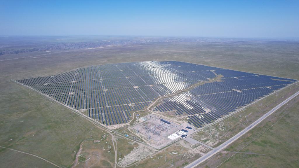 這是5月4日在哈薩克斯坦阿拉木圖州拍攝的卡普恰蓋100兆瓦光伏電站(無(wú)人機(jī)照片)。這是哈薩克斯坦單體最大的光伏發(fā)電項(xiàng)目之一,也是中哈綠色能源合作項(xiàng)目之一。新華社發(fā)(奧斯帕諾夫攝)