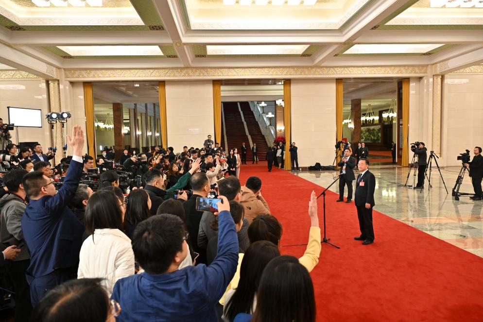 3月5日,第十四屆全國人民代表大會第二次會議首場“部長通道”集中采訪活動在北京人民大會堂舉行。新華社記者 李鑫 攝