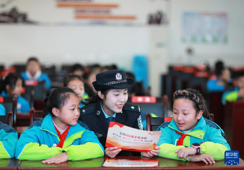 12月2日,民警在貴州省赤水市第二小學(xué)為學(xué)生普及憲法知識(shí)。