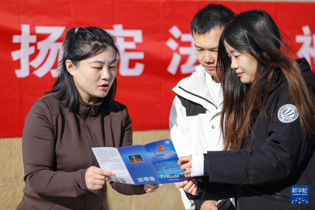 12月3日,在重慶市北碚區(qū)施家梁鎮(zhèn)兩江科技城小區(qū),工作人員為社區(qū)居民宣講憲法知識(shí)。
