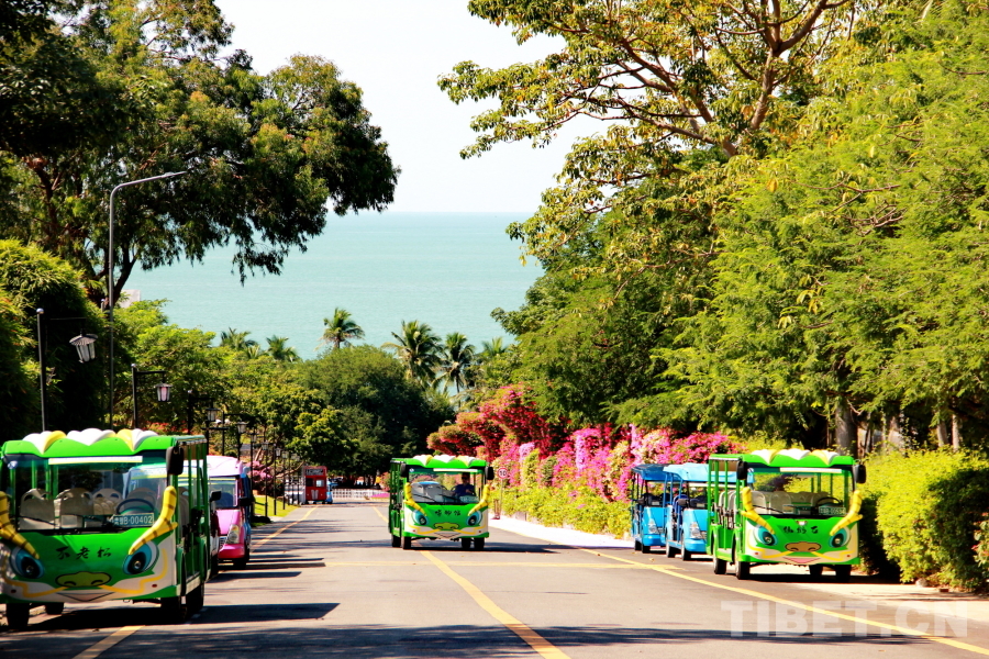圖為海南三亞崖州灣國家5A級景區(qū)的大小洞天旅游區(qū)電動觀光車 攝影:劉莉