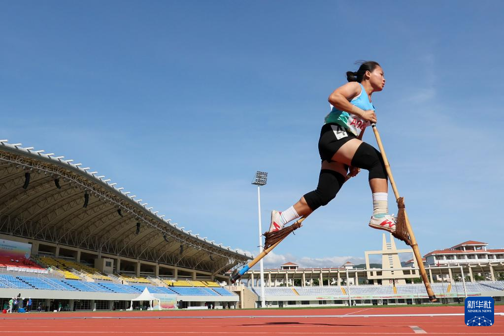 當(dāng)日,第十二屆全國(guó)少數(shù)民族傳統(tǒng)體育運(yùn)動(dòng)會(huì)高腳競(jìng)速女子400米復(fù)賽在海南省三亞市舉行。