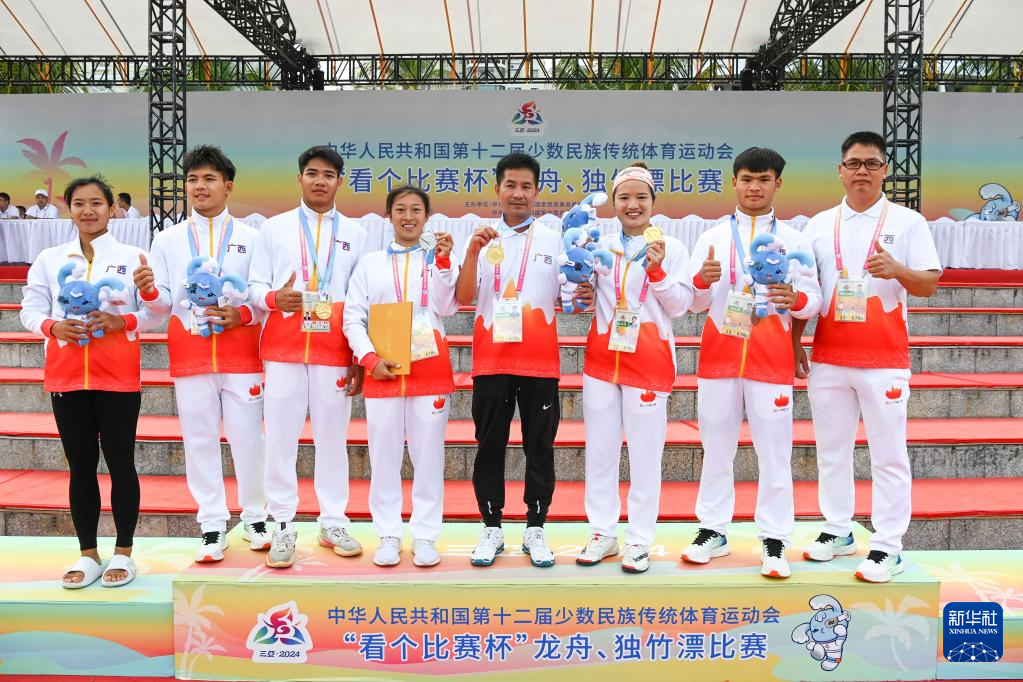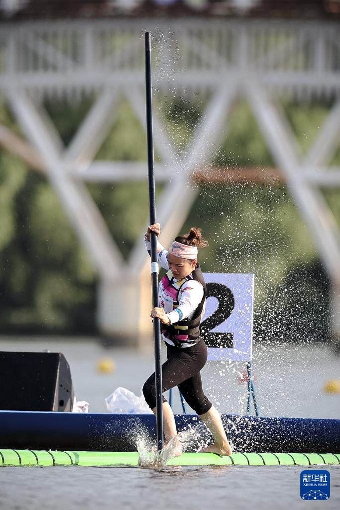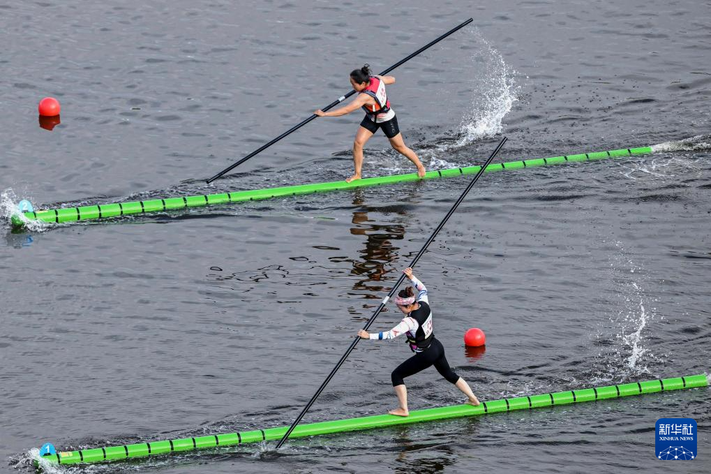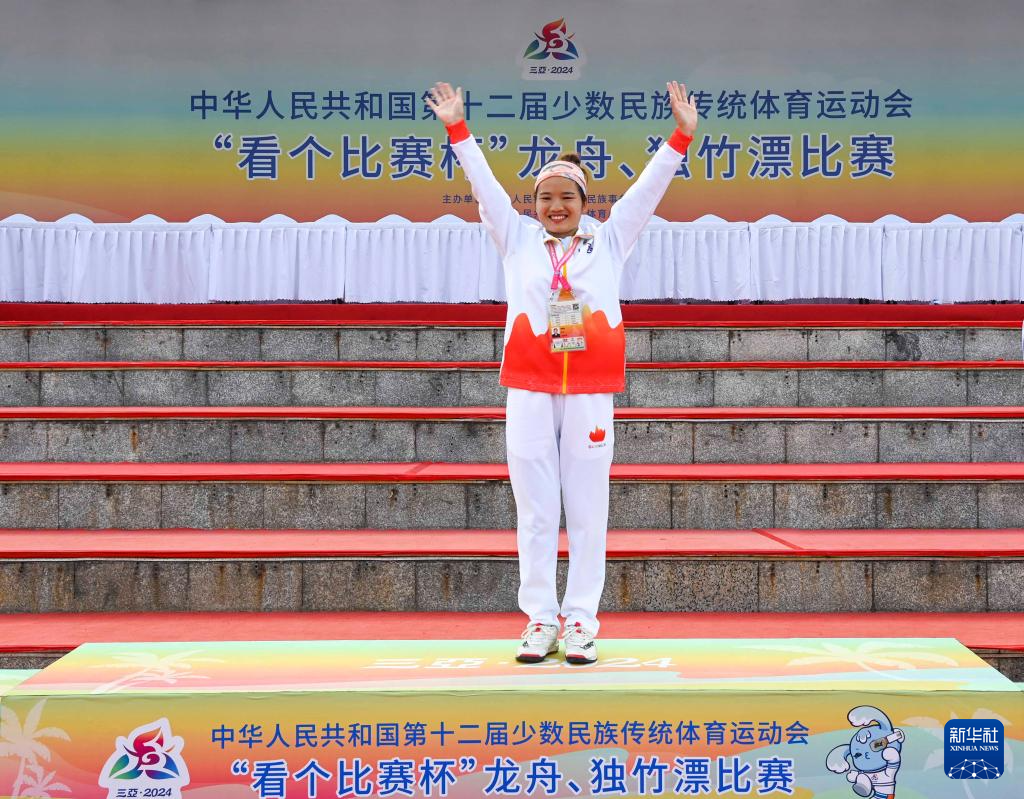 當日,第十二屆全國少數(shù)民族傳統(tǒng)體育運動會女子組(獨竹漂)100米直道賽在海南省三亞市舉行。