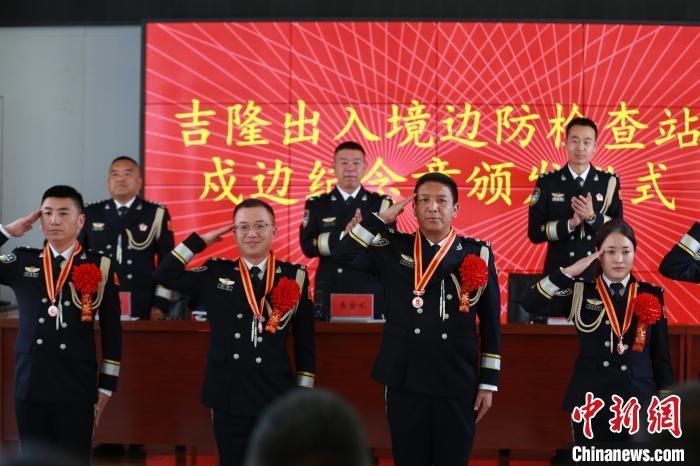 2日,西藏吉隆出入境邊防檢查站在吉隆口岸舉行戍守邊疆紀(jì)念章頒發(fā)儀式,20名移民管理警察獲頒銅制戍邊紀(jì)念章。