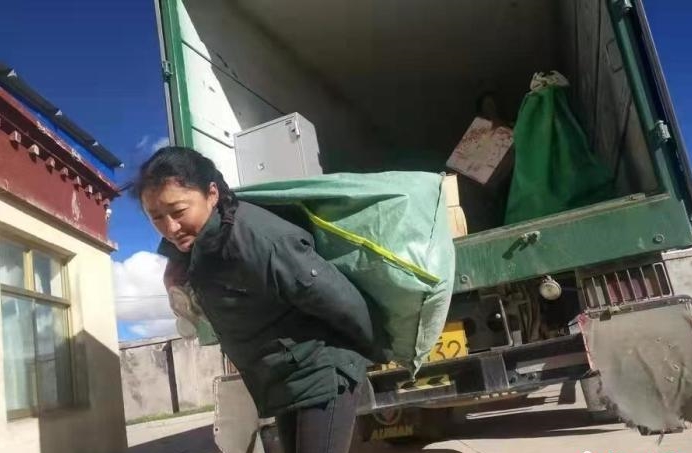 圖為益西卓嘎在搬運(yùn)郵件。受訪者供圖 圖片來源于中新網(wǎng)