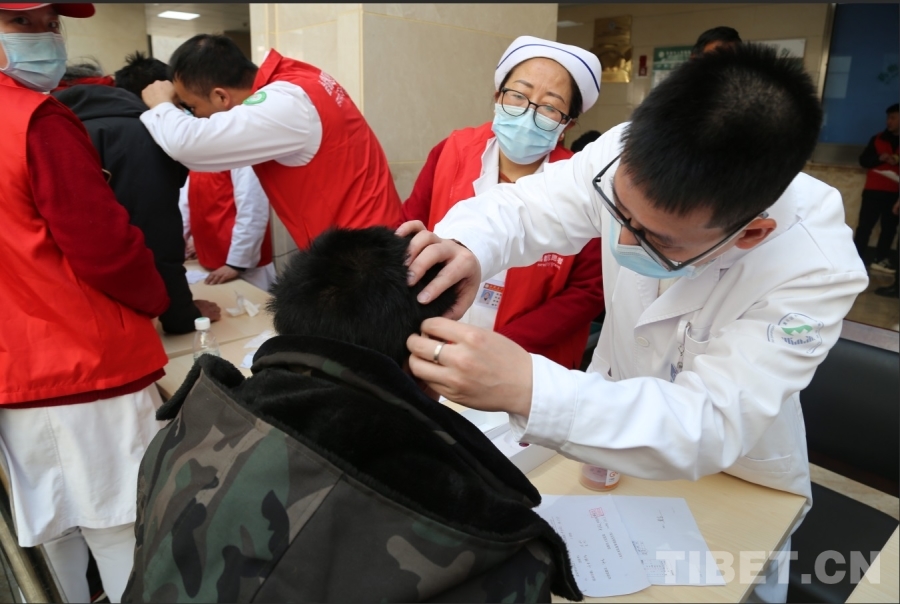 上午九點半,義診現(xiàn)場已排起長隊,聞訊而來的群眾絡(luò)繹不絕。由重慶醫(yī)科大學(xué)附屬第一醫(yī)院聽力師馬國庭帶隊的4名專家專程從重慶來到昌都,與昌都市人民醫(yī)院的6名醫(yī)生組成聯(lián)合醫(yī)療隊,耐心詢問患者病情,并借助專業(yè)設(shè)備仔細檢查。一句句溫暖的叮囑,讓這個高原初春暖意融融。