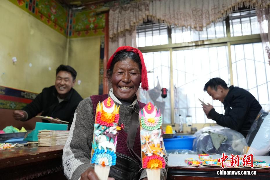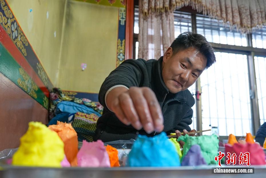 2月4日,隨著藏歷新年臨近,拉薩街頭年味漸濃,年貨市場(chǎng)上的“孜扎”迎來(lái)熱銷。酥油花藏語(yǔ)稱“孜扎”,是藏歷新年吉祥物切瑪盒的重要組件,也是藏族民眾家中必備的年貨。酥油花以酥油為主要原料,由匠人純手工捏制而成,造型涵蓋佛像、人物、花卉樹木、飛禽走獸等,常見(jiàn)圖案包含吉祥八寶、和諧四瑞、長(zhǎng)壽圖等,承載著藏族民眾對(duì)新年平安吉祥、萬(wàn)事順?biāo)斓拿篮闷碓浮D為手工藝人在制作酥油花。貢確 攝