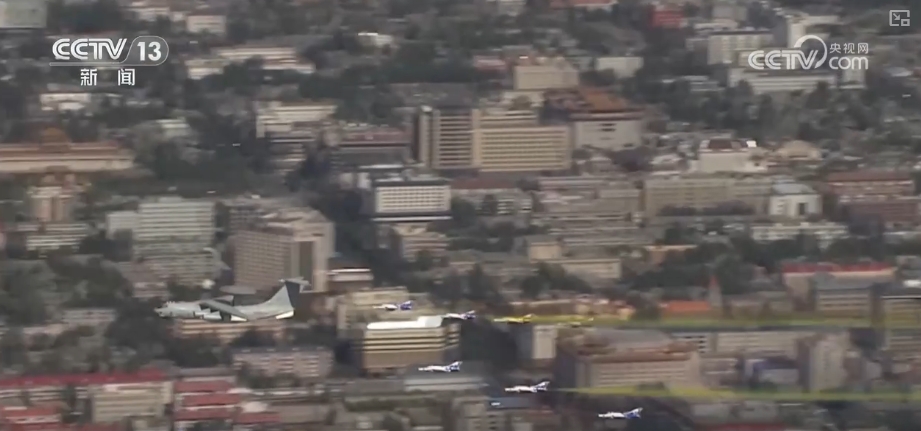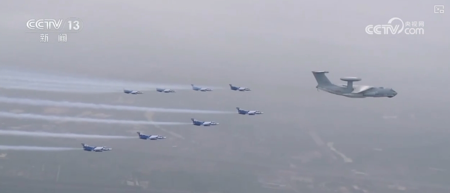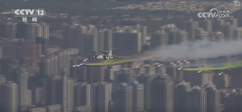 率先飛過天安門上空的是多機(jī)編隊(duì)的領(lǐng)隊(duì)梯隊(duì),帶隊(duì)長機(jī)是空警2000預(yù)警機(jī),“藍(lán)天嬌子”攜雷霆之勢(shì)展空中雄姿。
