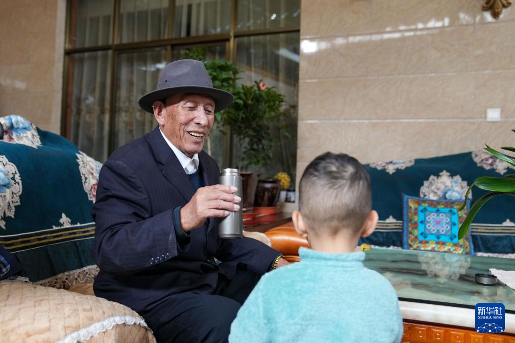 他的大兒女和二女兒在拉薩市中心開(kāi)了一家甜茶館,小女兒在銀行工作。洛桑說(shuō),平時(shí)在家照看外孫,偶爾到公園鍛煉身體,日子過(guò)得非常幸福。