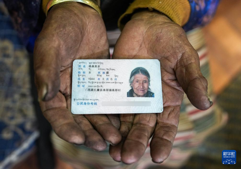 這是格桑美多老人的身份證(3月12日攝)。新華社記者 晉美多吉 攝
