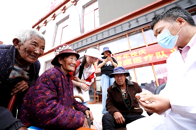 在察雅敬老院固定的每周義診中,招柏明醫(yī)生深刻地感受到黨和政府對(duì)孤寡老人無(wú)微不至的關(guān)懷,這也讓他作為一名普通黨員感受到肩上的責(zé)任,他告訴自己,要以身作則,把黨對(duì)藏族人民的恩情從自己手中的一根根銀針中傳遞出去。