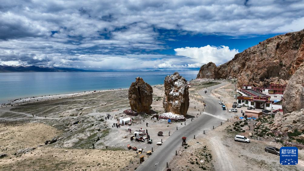 7月16日拍攝的納木錯(cuò)扎西島景區(qū)風(fēng)光(無人機(jī)照片)。新華社記者 晉美多吉 攝