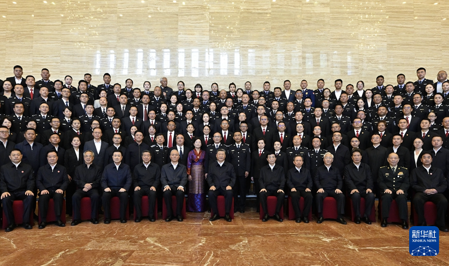 8月20日下午,中共中央總書記、國家主席、中央軍委主席習(xí)近平在拉薩親切接見西藏自治區(qū)政法干警代表,并同大家合影留念。新華社記者 殷博古 攝