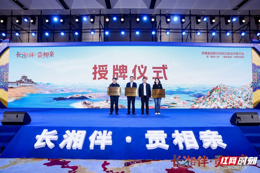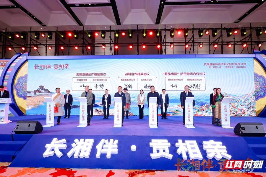 在簽約環(huán)節(jié),貢嘎縣與多家企業(yè)就農(nóng)產(chǎn)品采購、文旅合作達成共識?;顒蝇F(xiàn)場還揭牌成立“貢嘎藏品入湘與湘客游藏服務(wù)中心”“貢嘎大學生入湘就業(yè)服務(wù)中心”“貢嘎區(qū)外招商引資服務(wù)中心”,推動湘藏協(xié)作走向機制化、常態(tài)化。