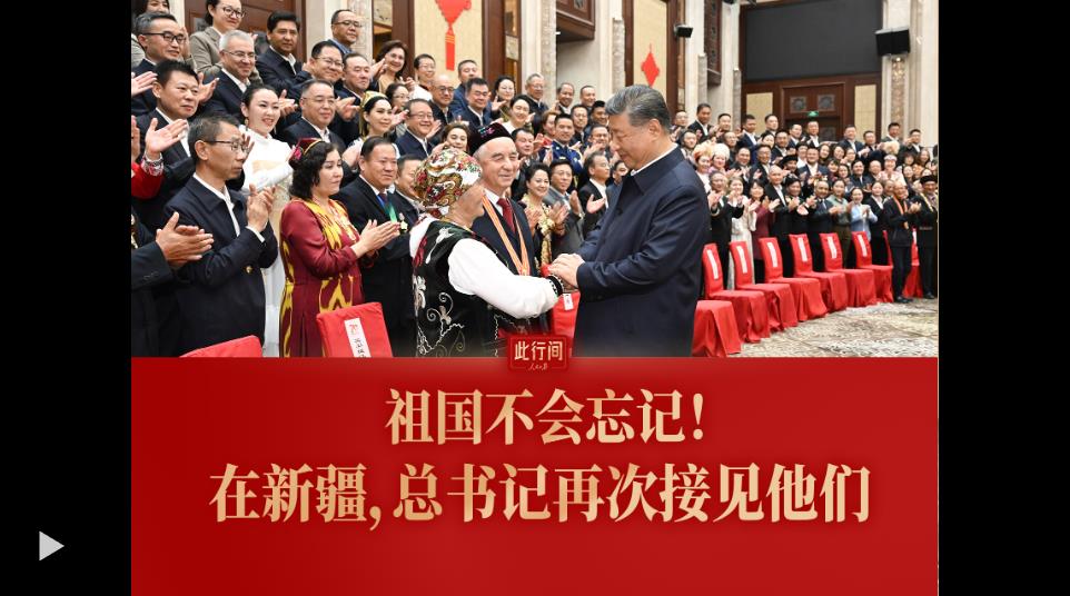 習(xí)近平23日下午接見新疆各族各界代表。代表中,我們發(fā)現(xiàn)了這4位,他們是“七一勛章”獲得者魏德友、“七一勛章”獲得者買買提江·吾買爾、“人民楷模”布茹瑪汗·毛勒朵、“人民衛(wèi)士”巴依卡·凱力迪別克。習(xí)近平總書記微笑著同他們親切握手。