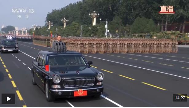 在雄壯的軍樂(lè)聲中,習(xí)近平乘車沿著寬闊的長(zhǎng)安街,依次檢閱徒步方隊(duì)和裝備方隊(duì)。