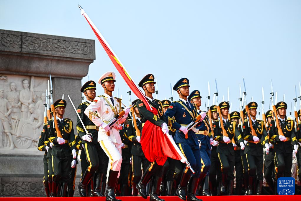 9月3日,紀(jì)念中國人民抗日戰(zhàn)爭(zhēng)暨世界反法西斯戰(zhàn)爭(zhēng)勝利80周年大會(huì)在北京隆重舉行。這是國旗護(hù)衛(wèi)隊(duì)列隊(duì)。