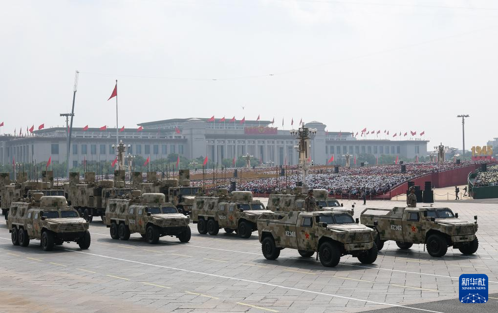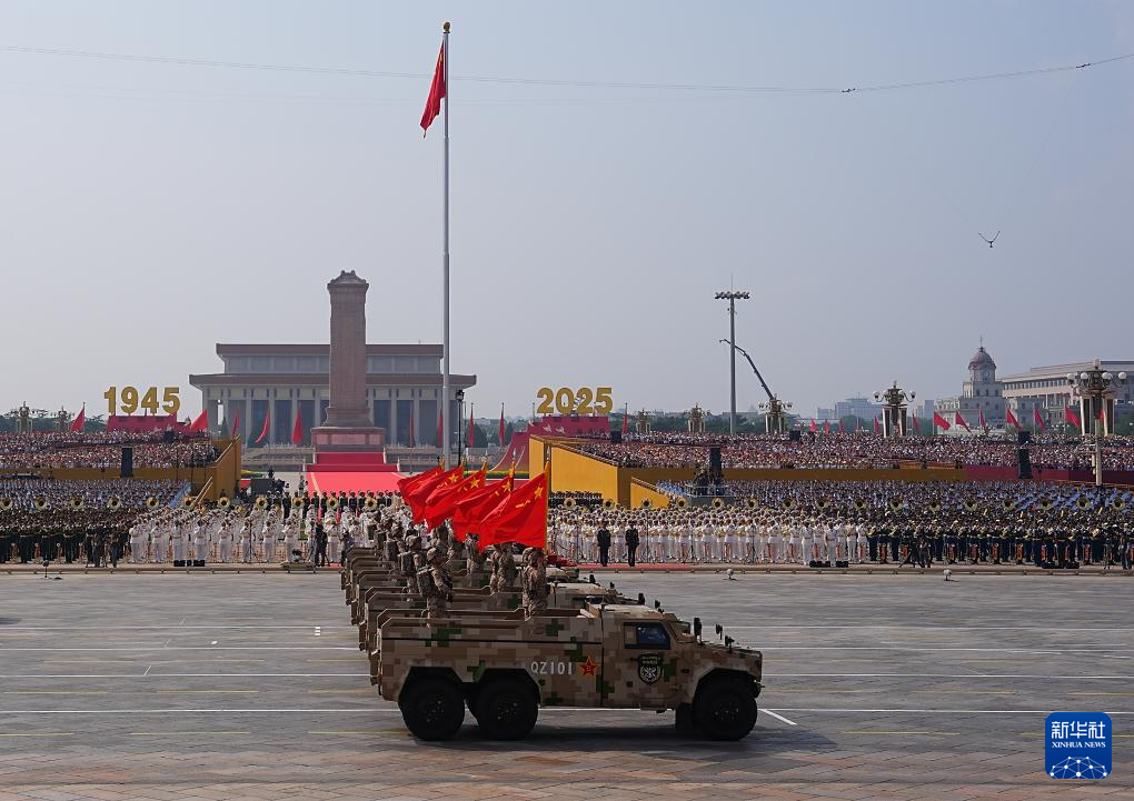 9月3日,紀念中國人民抗日戰(zhàn)爭暨世界反法西斯戰(zhàn)爭勝利80周年大會在北京隆重舉行。這是信息支援方隊接受檢閱。
