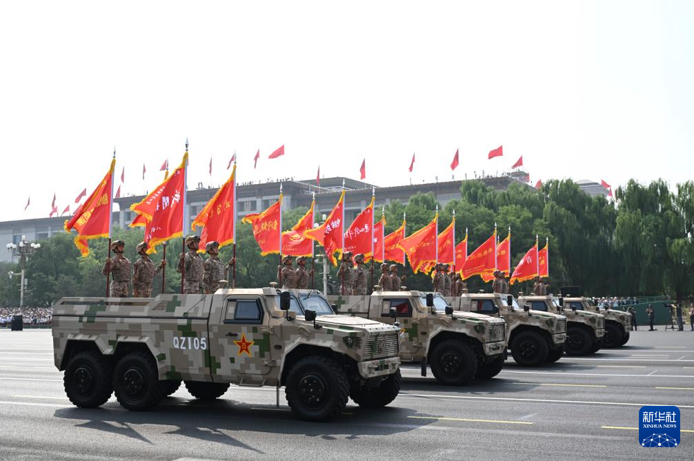 9月3日,紀念中國人民抗日戰(zhàn)爭暨世界反法西斯戰(zhàn)爭勝利80周年大會在北京隆重舉行。這是戰(zhàn)旗方隊接受檢閱。