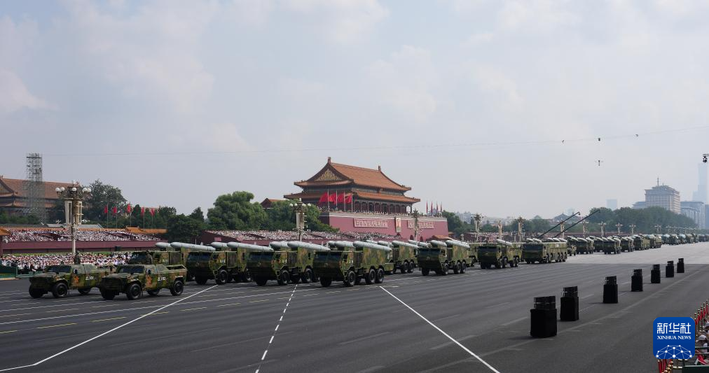9月3日,紀念中國人民抗日戰(zhàn)爭暨世界反法西斯戰(zhàn)爭勝利80周年大會在北京隆重舉行。這是火箭軍方隊接受檢閱。