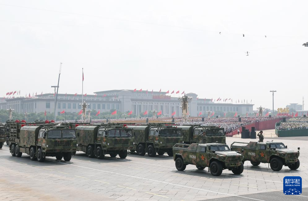9月3日,紀念中國人民抗日戰(zhàn)爭暨世界反法西斯戰(zhàn)爭勝利80周年大會在北京隆重舉行。這是遠程火炮方隊接受檢閱。