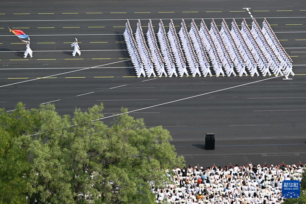 9月3日,紀(jì)念中國(guó)人民抗日戰(zhàn)爭(zhēng)暨世界反法西斯戰(zhàn)爭(zhēng)勝利80周年大會(huì)在北京隆重舉行。這是海軍方隊(duì)接受檢閱。