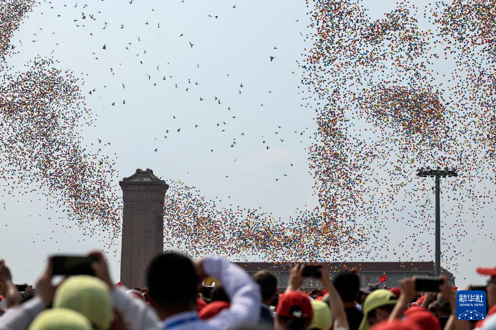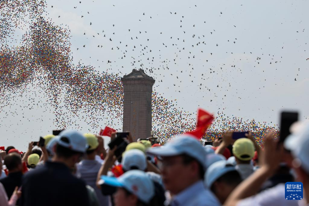 9月3日,紀(jì)念中國(guó)人民抗日戰(zhàn)爭(zhēng)暨世界反法西斯戰(zhàn)爭(zhēng)勝利80周年大會(huì)在北京隆重舉行。這是紀(jì)念大會(huì)現(xiàn)場(chǎng)放飛氣球和鴿子。