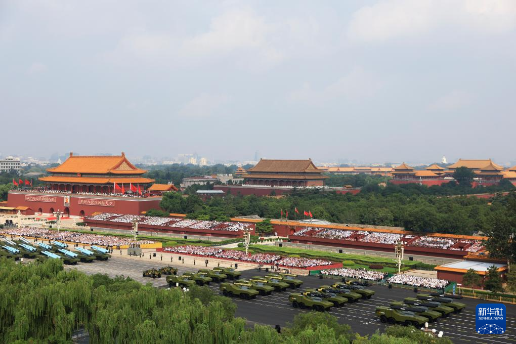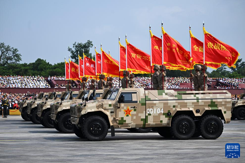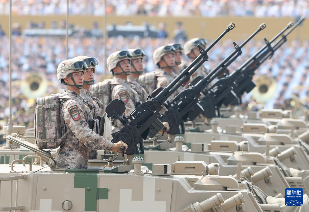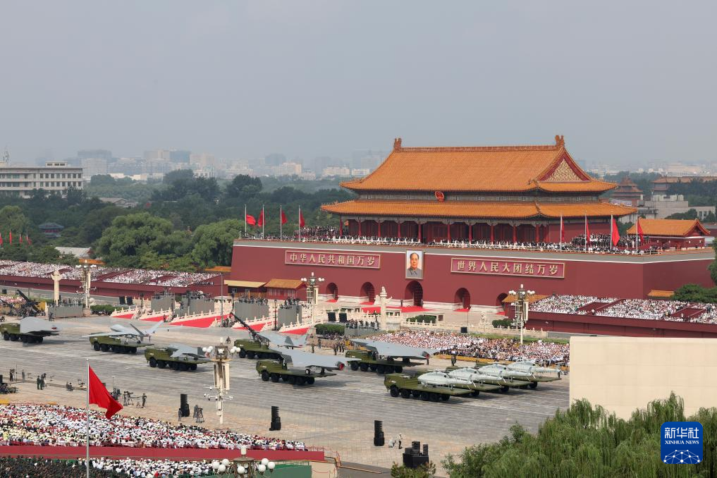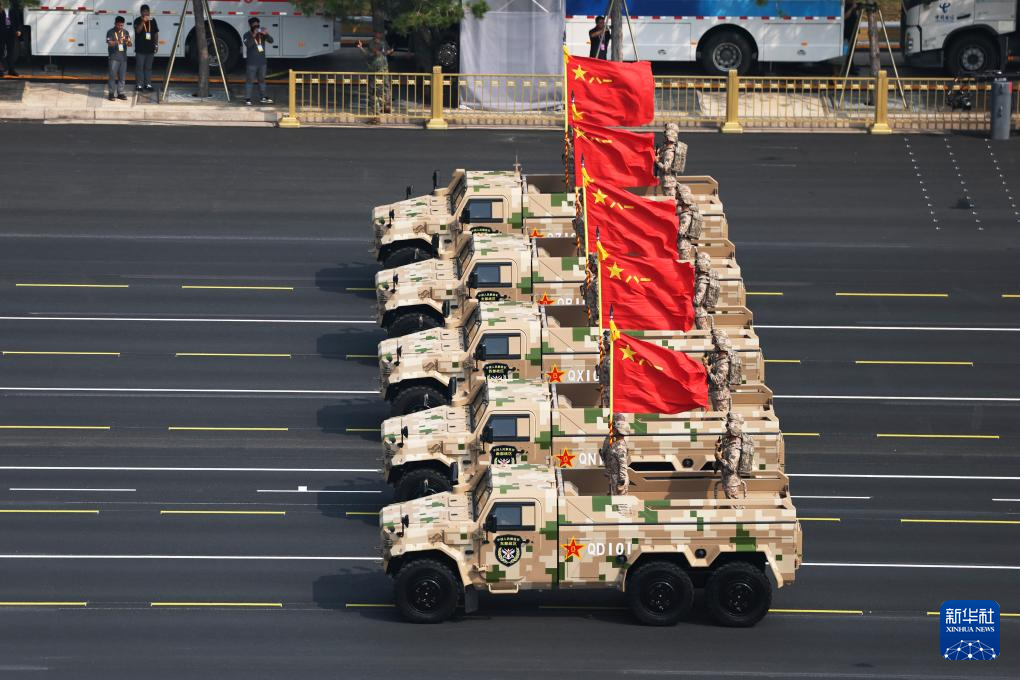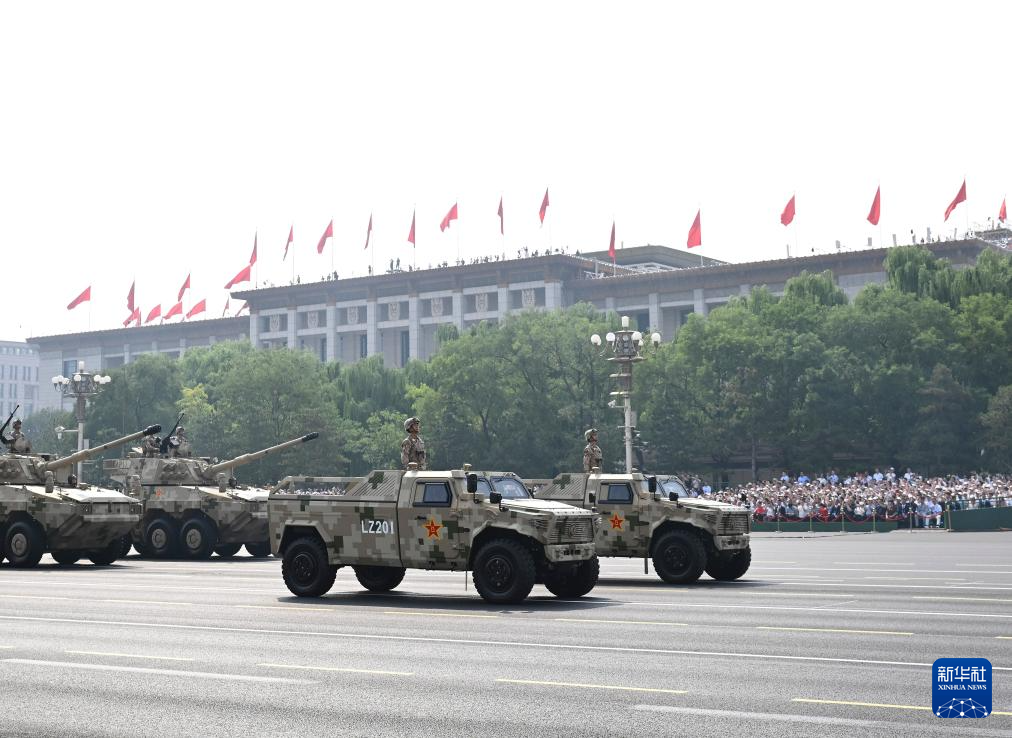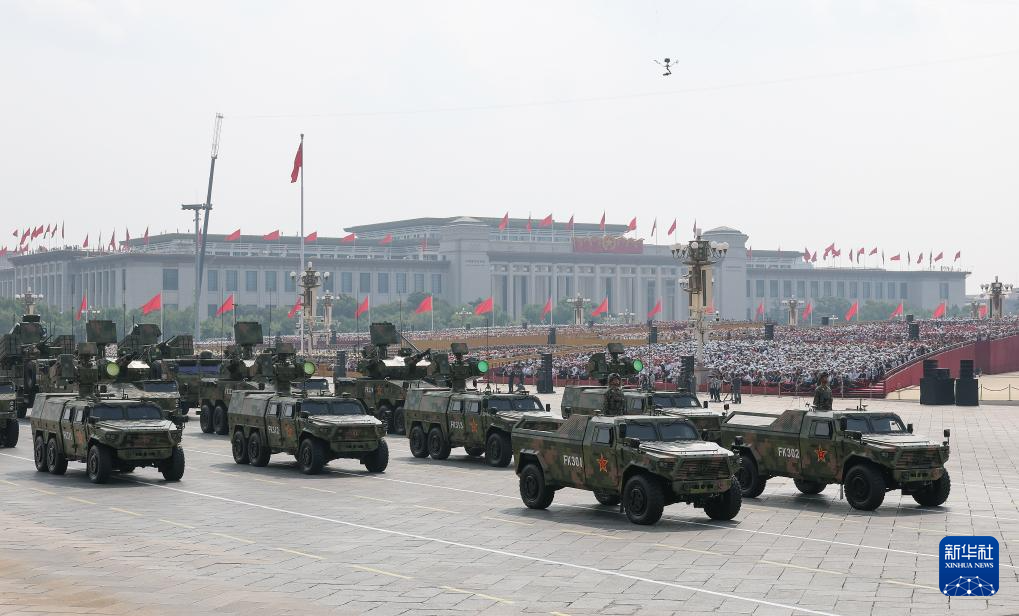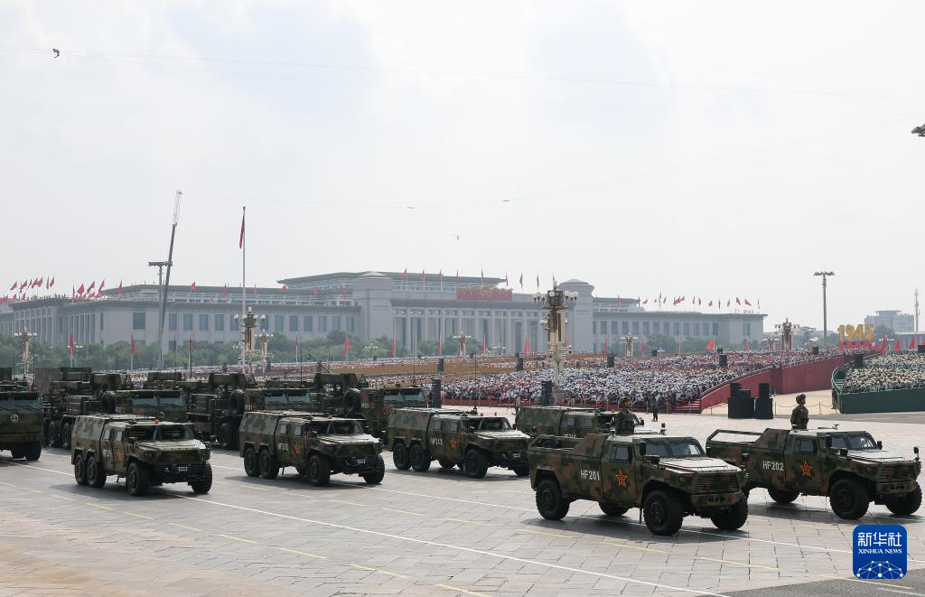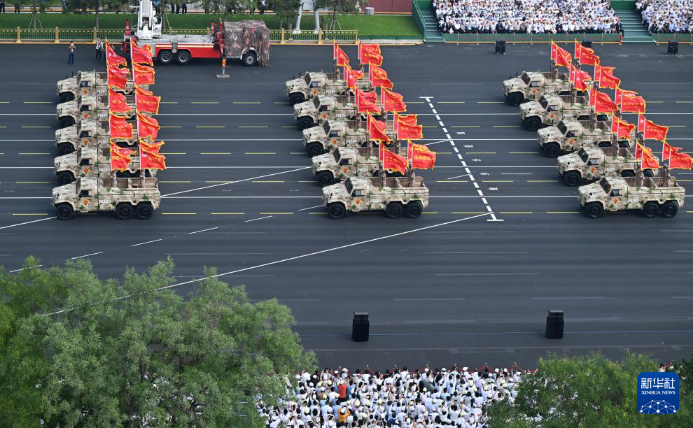 9月3日,紀(jì)念中國(guó)人民抗日戰(zhàn)爭(zhēng)暨世界反法西斯戰(zhàn)爭(zhēng)勝利80周年大會(huì)在北京隆重舉行。這是裝備方隊(duì)接受檢閱。