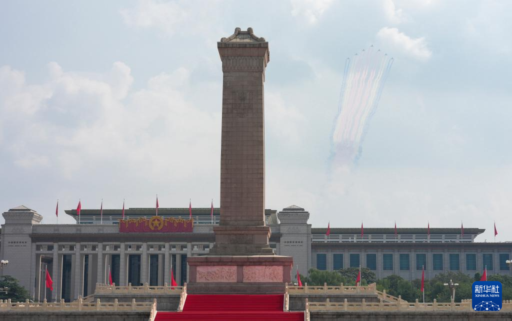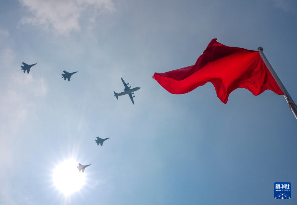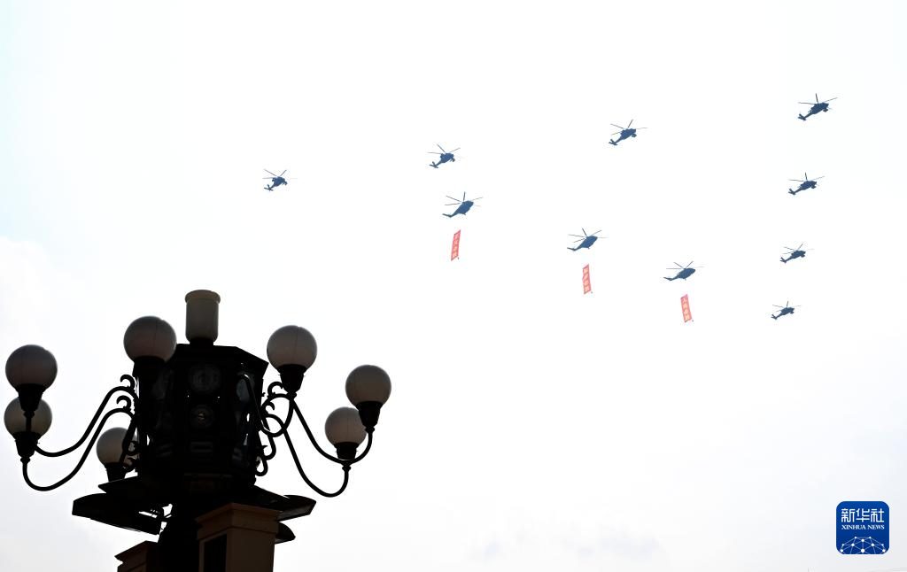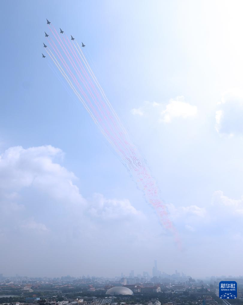 9月3日,紀(jì)念中國(guó)人民抗日戰(zhàn)爭(zhēng)暨世界反法西斯戰(zhàn)爭(zhēng)勝利80周年大會(huì)在北京隆重舉行。這是空中護(hù)旗梯隊(duì)通過天安門廣場(chǎng)。